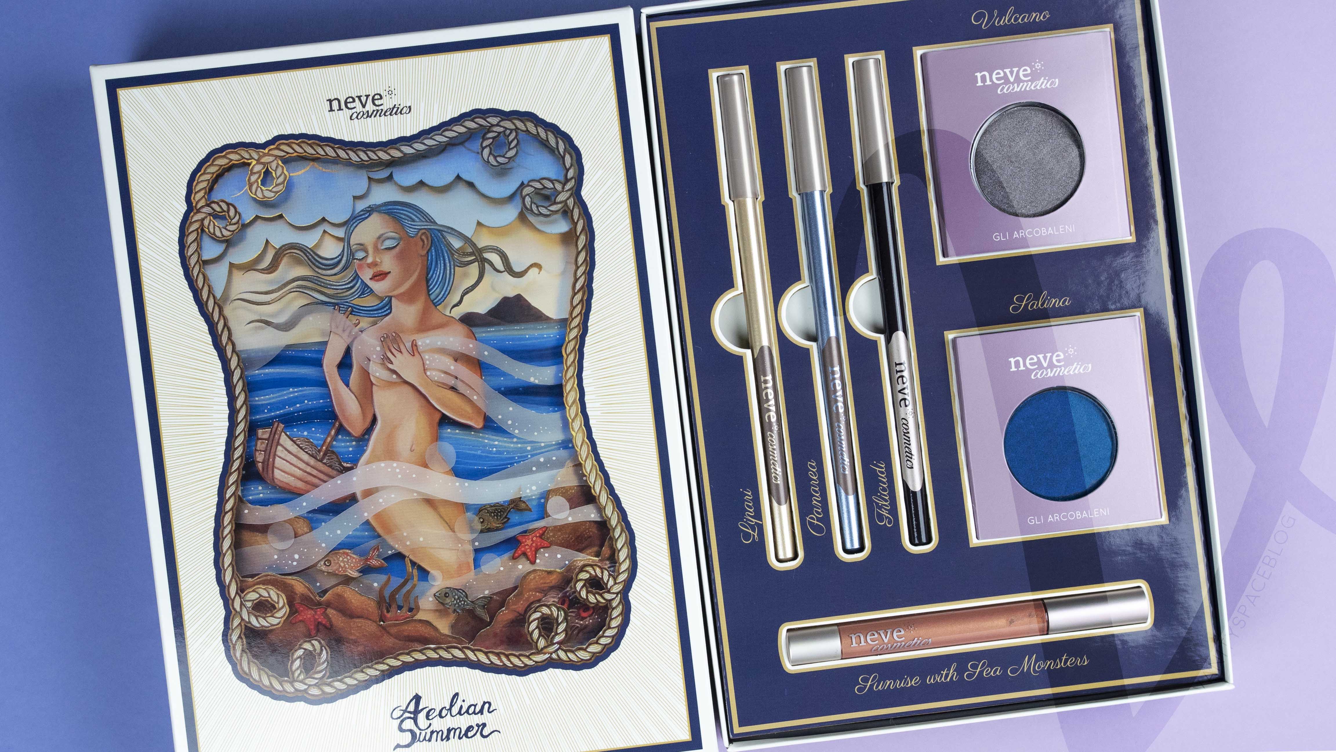 E’ proprio questa la magia naturale a cui Neve Cosmetics si è ispirata per creare AEOLIAN SUMMER, il nuovo look estivo del 2018, proposto per la prima volta in un delizioso cofanetto Limited Edition, contenente tutti i prodotti della collezione. Il disegno che caratterizza il bundle, una Venere dai capelli celesti che emerge dalle acque, tra creature marine, una barca e la presenza di un vulcano sullo sfondo, è opera dell’artista calabrese Gerlanda di Francia.