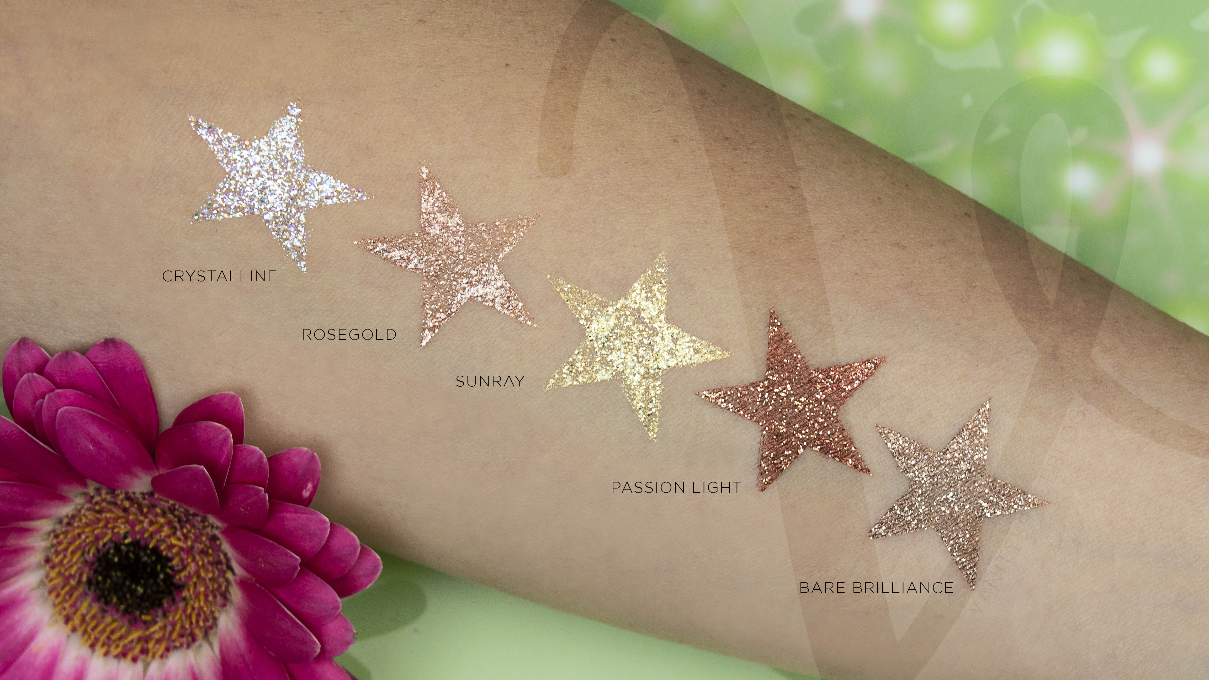 Possono essere tranquillamente indossati da soli oppure come top coat sopra ad altri ombretti per un effetto scintillante e accattivante. La formula non è BIO, ma sono comunque infusi con Estratti di Camomilla e Rosa, per idratare e prendersi cura degli occhi.